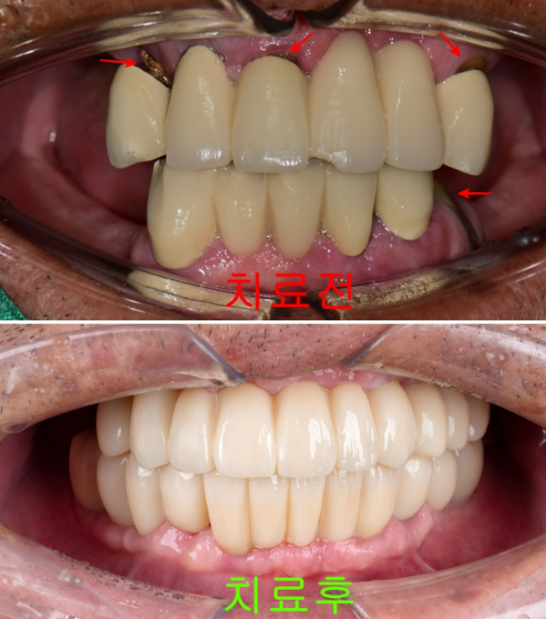 기존의 브릿지와 손상된 치아들로 인해 저작에 어려움을 겪고 계셨고,