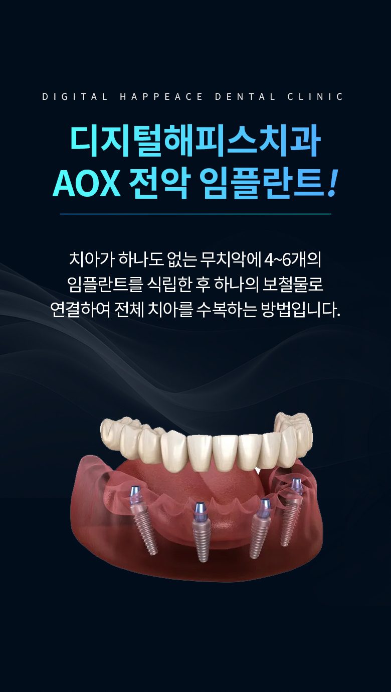 반면에 디지털해피스 전악 임플란트는 임플란트에 단단하게 고정된 보철물의 형태로,